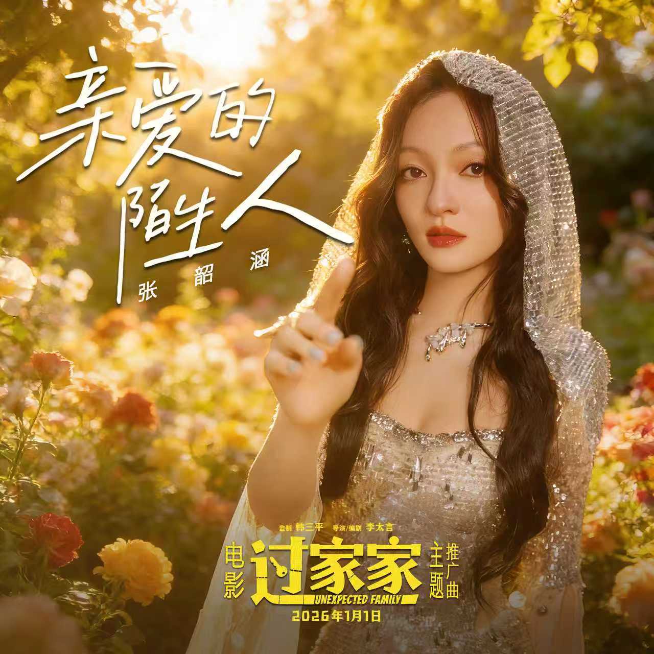 即将于2026年1月1日上映的合家欢电影《过家家》今日发布张韶涵演唱的主题推广曲《亲爱的陌生人》及同名MV,歌曲由曾打造《世界赠予我》的著名音乐制作人曹正杰作曲,袁晶作词。张韶涵以一贯动人而细腻的嗓音,将家人之间无论顺境逆境始终相依相伴、彼此扶持的深厚情感娓娓道来,用歌声温暖诠释:那些看似“陌生”的缘分,或许正是生命赠予我们最珍贵的“家人”。