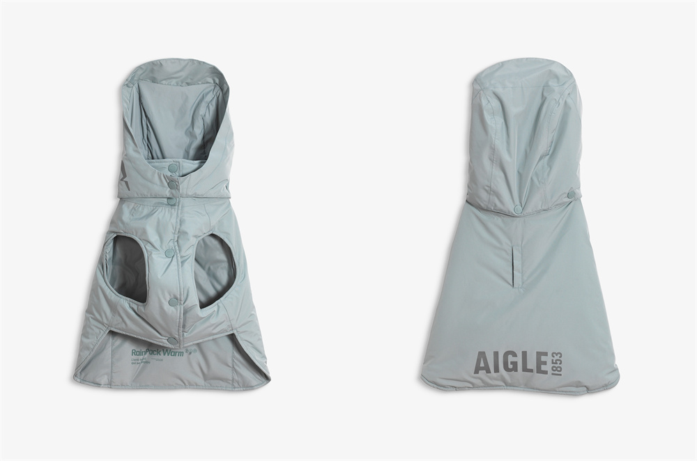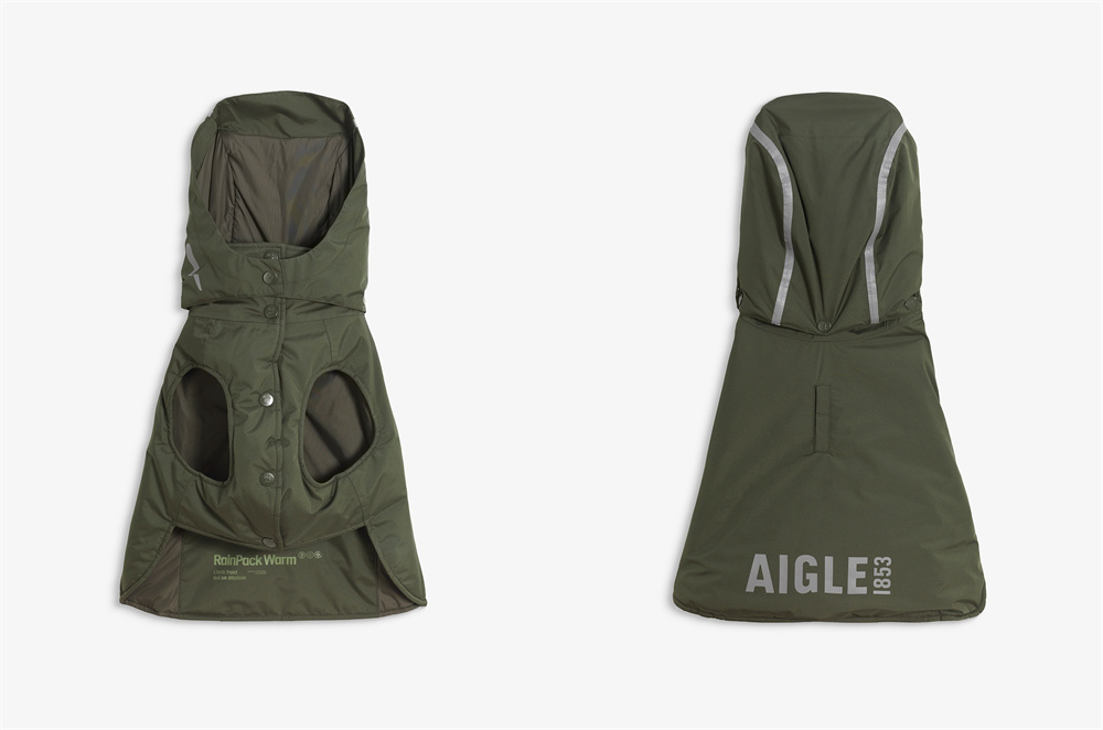 AIGLE人宠同款产品承袭品牌百年法式设计基因,致力于为主人和爱宠的出行带来更舒适、更愉悦的体验。RainPack Warm温暖防雨系列采用MTD防水面料、Repreve®保温科技及注重活动自由的结构设计,轻松应对多种户外环境。同时其贯彻着AIGLE可持续理念,内衬不仅环保可回收,还具有柔软亲肤的特点,确保人和宠物的健康安全。更有一件打包功能,轻松折叠成旅行枕大小,随行便捷,让每一次出行都从容自在。