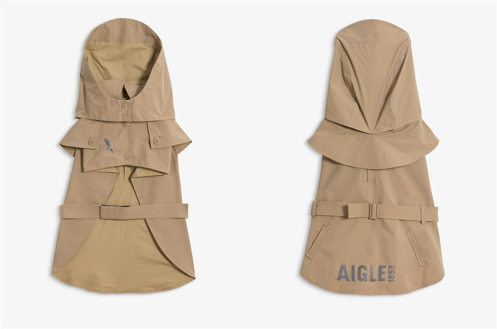 此外,AIGLE特别推出宠物款风衣,深度汲取品牌经典风衣的设计精髓,将法式优雅延续至宠物服饰。贴合宠物身形的剪裁保障活动自由,搭配标志性风衣腰带,于细节中勾勒利落型格。其出色的防风防雨功能,让主人与爱宠从容应对天气变化,随时保持有型姿态,尽享每一段旅程。