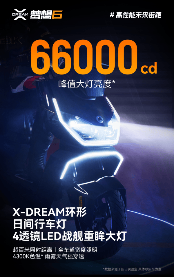 雨夜行车不再是视觉的挑战。旧电动车昏暗的灯光在雨雾中形同虚设,梦想6的照明系统却能点亮安全感。它搭载X-DREAM四透镜LED战舰重眸大灯,以66000CD的亮度穿透雨幕,照射距离超100米,宽度超15米覆盖整个车道,能清晰映照出路面积水、前方车辆和行人轮廓,让驾驶者能够提前预判路况。战机涡喷式LED后尾灯反应速度仅0.01秒,倒车或急刹时自动双闪,为后方车辆提供明确警示。这套照明系统不仅照亮前路,更照亮了你心中的安全感。