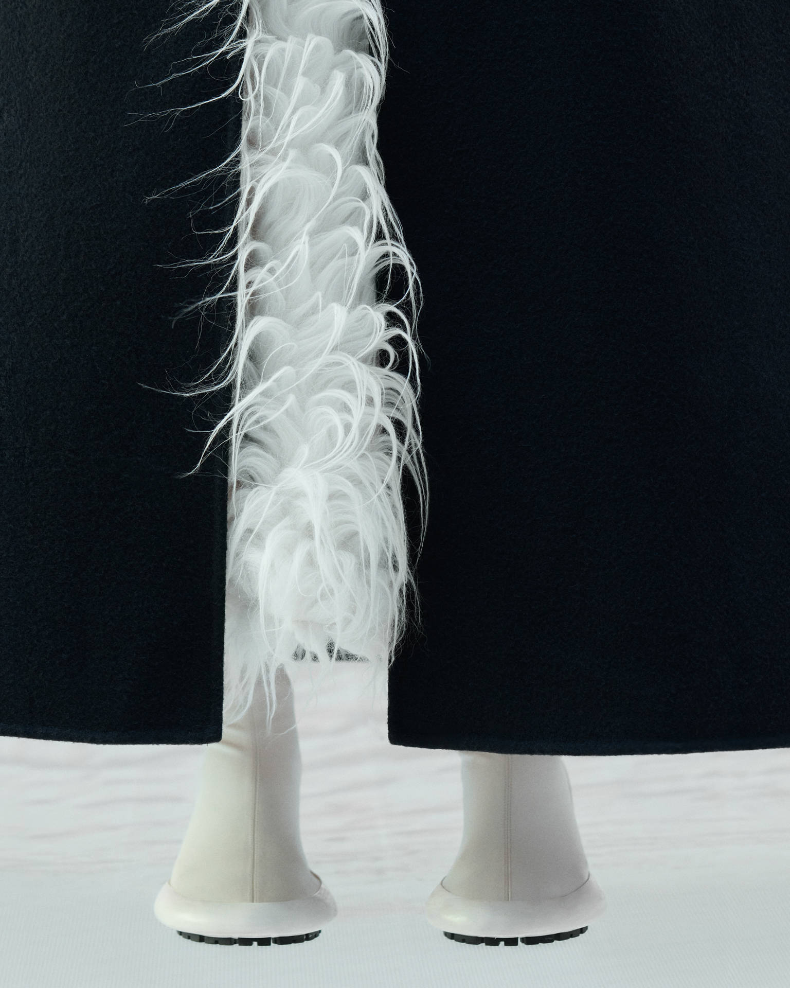 本系列的先锋设计藉由数字影棚短片与影像呈现,模特置身于壮丽自然景观的投影中,虚实交织,如梦似幻。巍峨松林与皑皑雪峰构成静谧背景,致敬盟可睐Moncler高山渊源。服饰作品凝结自然之静美,面料随形而动,风韵天成。