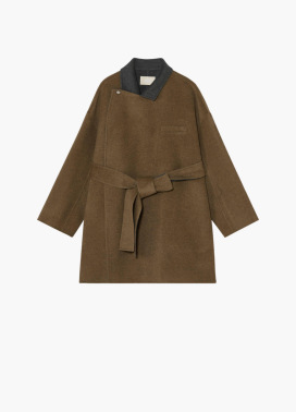粗纺双面呢T型中长款大衣 以超宽松衣身解构传统廓形,不对称领口设计与双面异色呢料相映成趣,呈现随性而富有层次感的造型。这种不拘一格的设计语言,让女性在松弛穿搭中自然流露优雅气质,正是更多可能性的生动诠释。