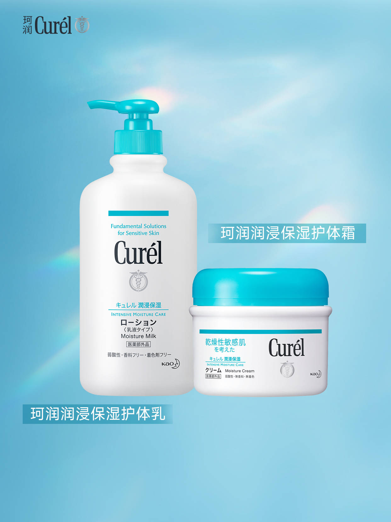 清洁之后,身体肌肤的保湿护理也不能偷懒,不然干燥、白屑会更易“找上门”。珂润润浸保湿护体乳和保湿护体霜,通过添加神经酰胺功能物质※和蓝桉叶提取物,充分滋润干燥肌肤,守护肌肤不易受外部刺激影响。护体乳质地清爽,轻润好吸收,刚洗完澡的时候用刚刚好;护体霜质地更醇厚滋润,如北方干冷地区,或皮肤特别干燥的部位,用它更合适。长期使用护体产品可以让肌肤摸起来光滑又水润。