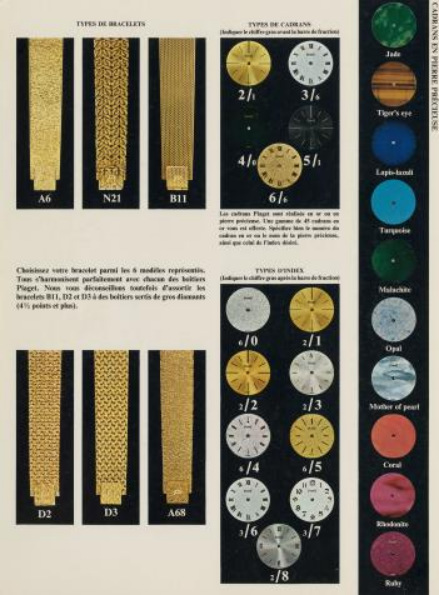 这些作品的成功,进一步坚定了PIAGET伯爵以创新与巧思雕琢时计的制表哲学。丰富多元的装饰宝石,为PIAGET伯爵开启了个性化创作的全新篇章,精准预见了20世纪末在设计界兴起的个性化风潮。20世纪60年代中期,PIAGET伯爵推出了“风格搭配顾问”(Style Selector)半定制服务,让客户可以自由选择表链类型、表盘材质和时标样式型,设计专属于自己的珠宝腕表:可选择黄金表链、黄金或装饰宝石表盘(涵盖虎眼石、青金石、孔雀石、欧泊、珍珠母贝、珊瑚石、蔷薇辉石、红宝石原石),搭配罗马或阿拉伯数字时标。最后,更可选择表圈上的钻石镶嵌方式,从切割工艺与钻石尺寸皆可定制,令每一处细节都镌刻专属审美印记。